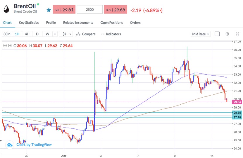 Lastly, Crude Oil, as we pointed out yesterday, has not reacted to production cuts in the OPEC+ and G20 countries as it is considered insufficient to offset the drop in global demand and has lost much of the territory gained in recent days. For the future price action of this asset, the publications of stocks, which currently re-enter the downtrend, play a significant role. BrentOil finds support in the areas of $28.35 and $27.78.